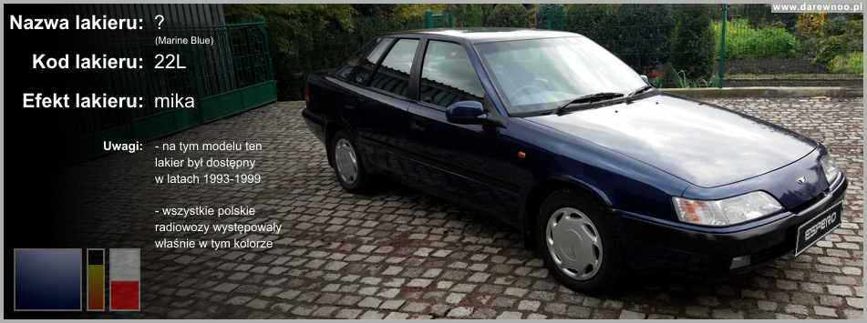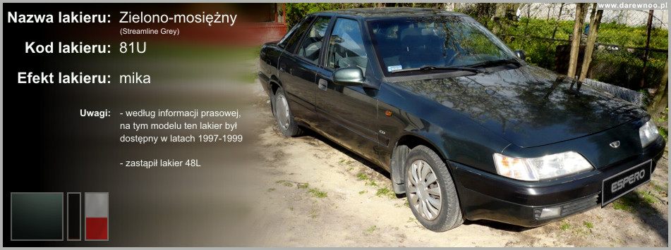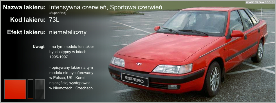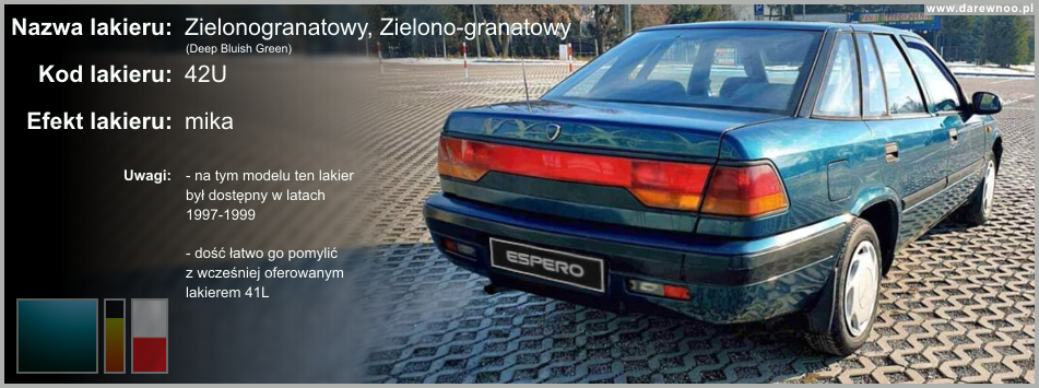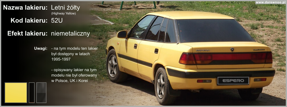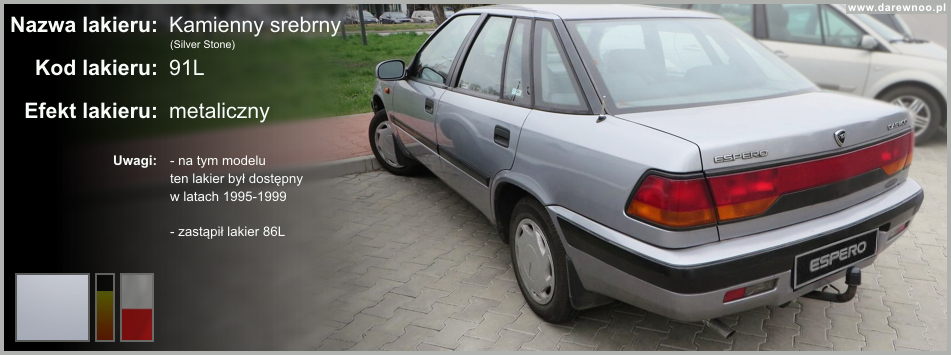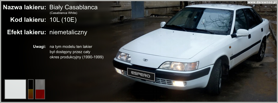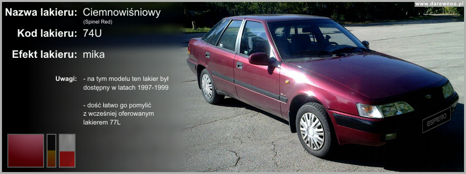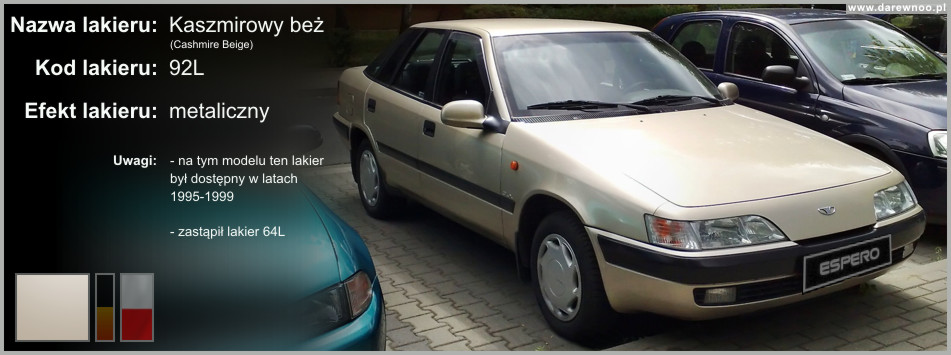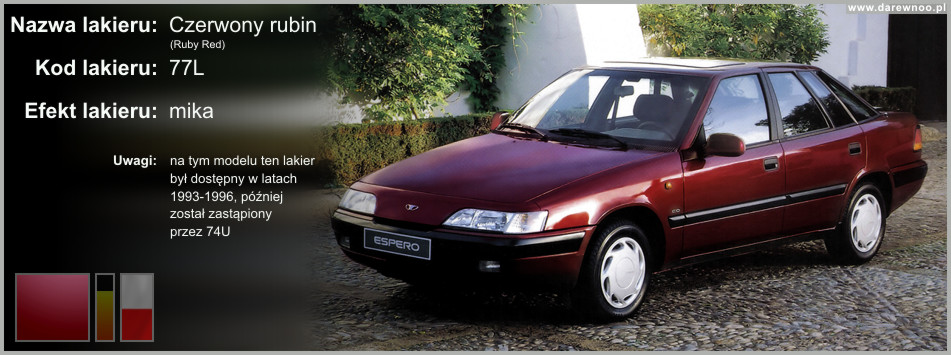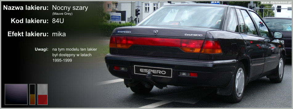 W poniższym spisie lakierów Daewoo Espero uwzględnione zostały te z okresu 1994-1999.