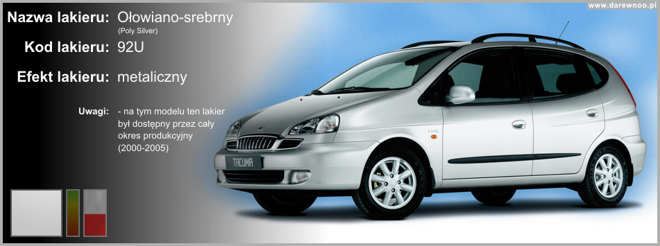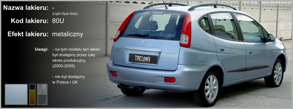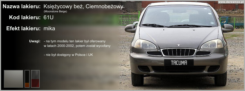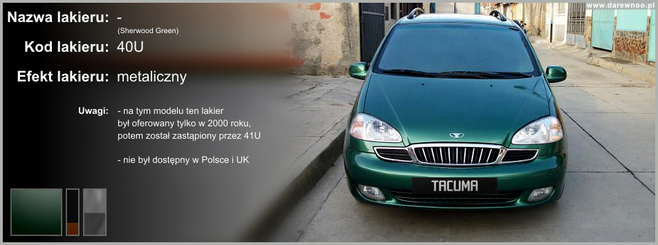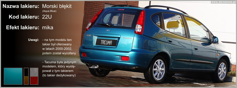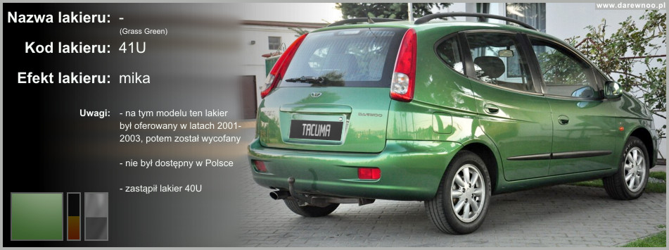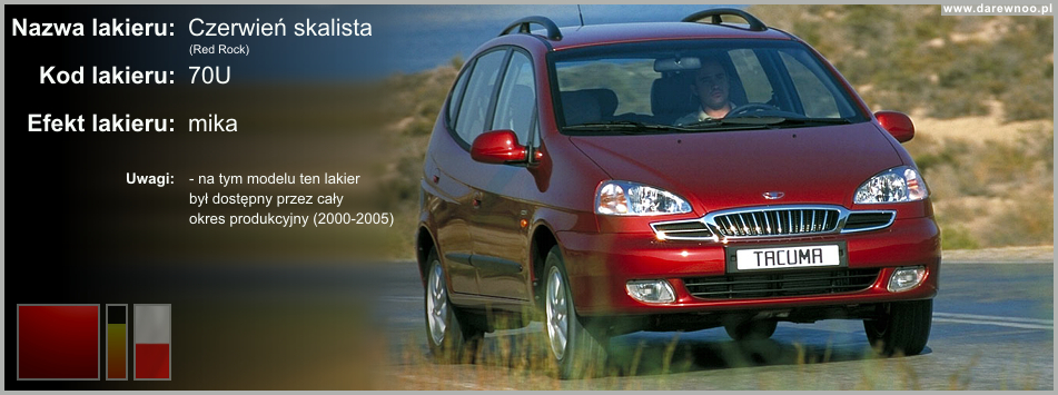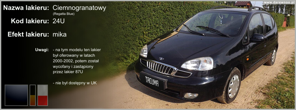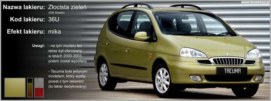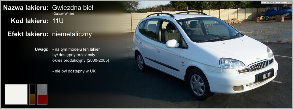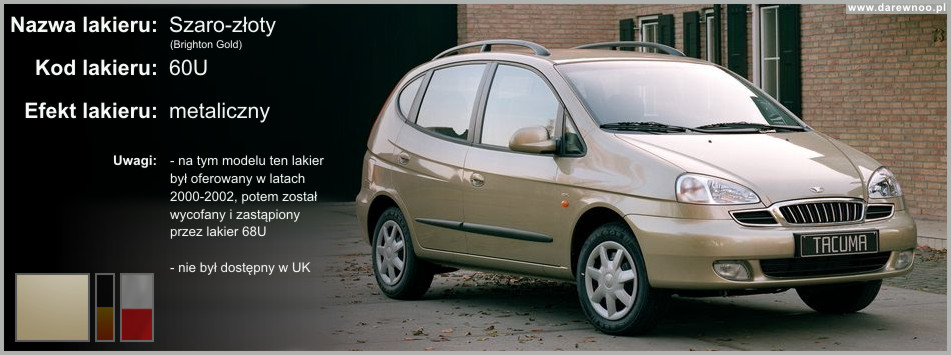 W poniższym spisie lakierów Daewoo Tacumy/Rezzo, uwzględnione zostały tylko te z okresu 2000-2002